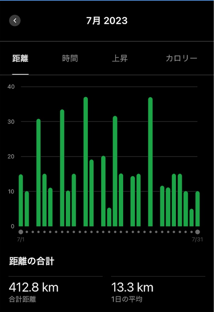 7月は月間走行距離400km超。